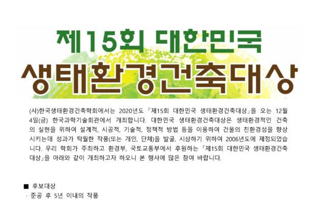 [2020년도 제15회 대한민국생태환경건축대상]
